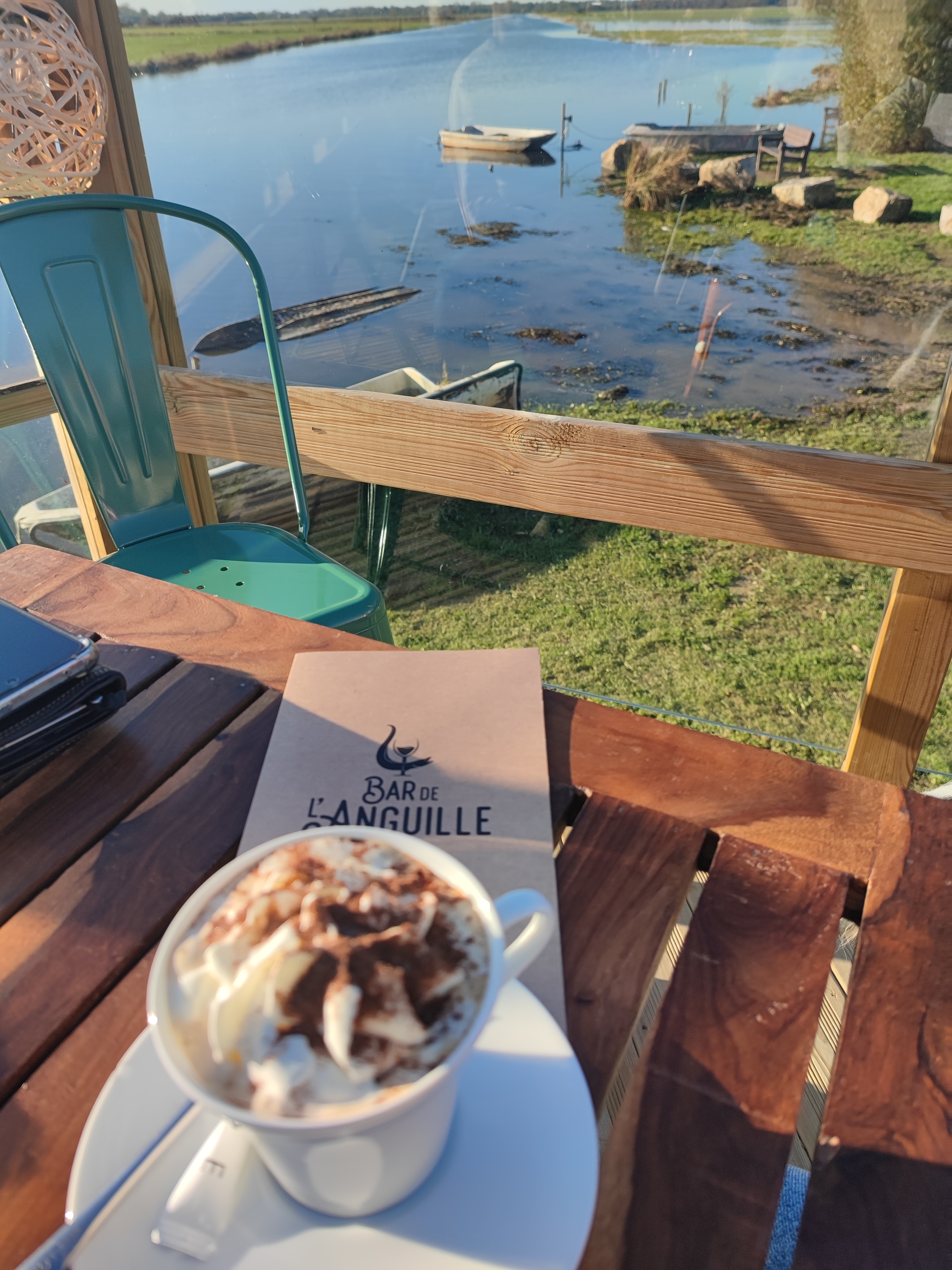 Posté le 14/05/2019 à 18:35"Endroit calme pour boire un verre. Belle vue sur les marais."