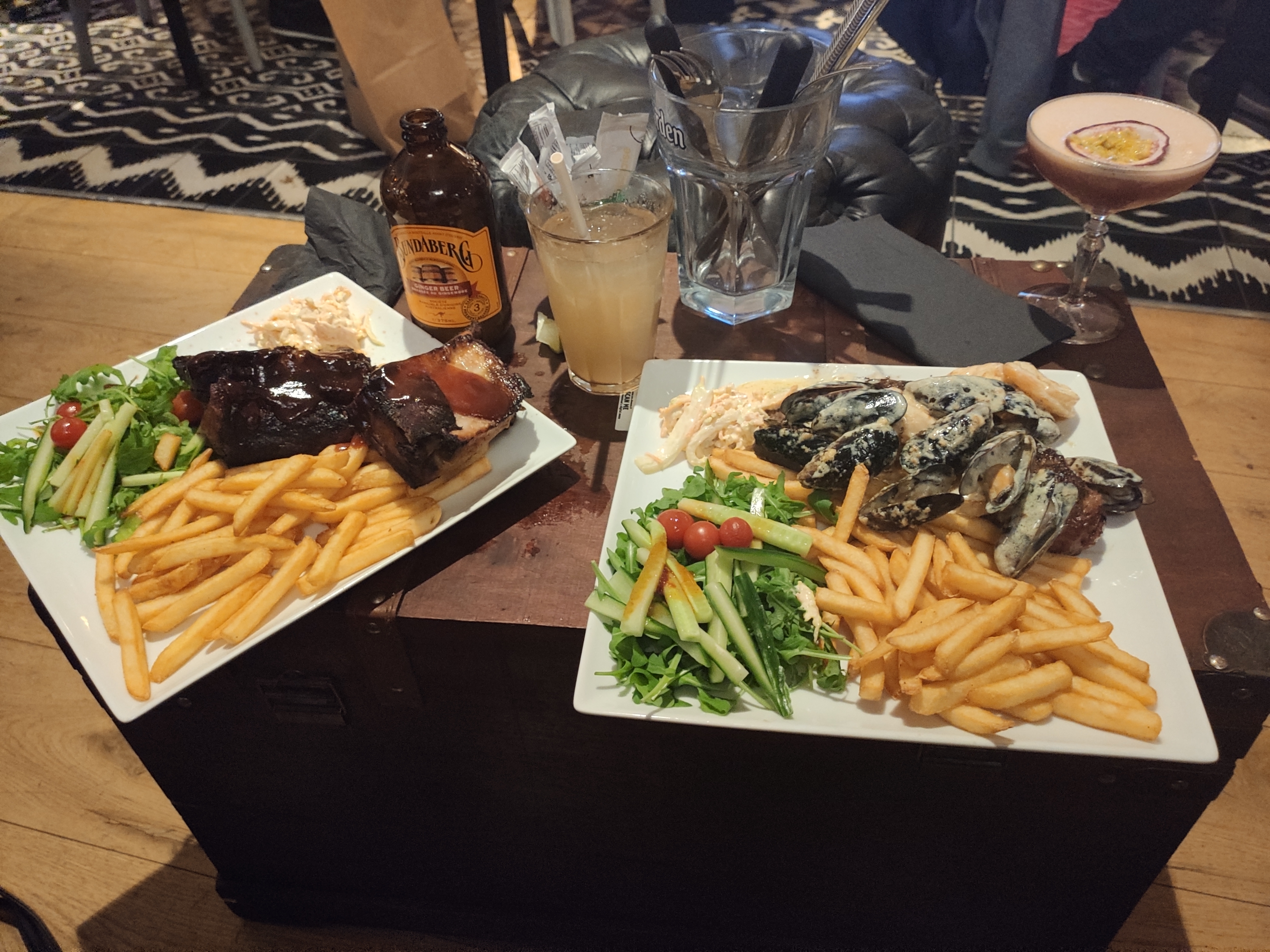 Posté le 01/09/2019 à 04:07"Nous nous sommes retrouvés par hasard dans ce restaurant / bar , après que notre réservation au Wayne’s bien que confirmée n’eut pas été honorée par le staff. Agréable surprise ! Beaucoup de choix de cocktails, de bières. Le carte des plats n’est pas très étoffée. Le serveur australien était aux petits soins et de bonS conseils. Donc on a pu boire, manger et regarder le match sur écran plat. Pas besoin du Wayne’s. Petit bémol pour les prix un peu cher."